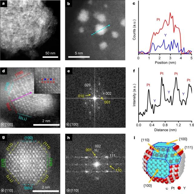 圖1. 介孔MFI沸石上形成的具有L12超晶格結構的Pt3Y納米顆粒。